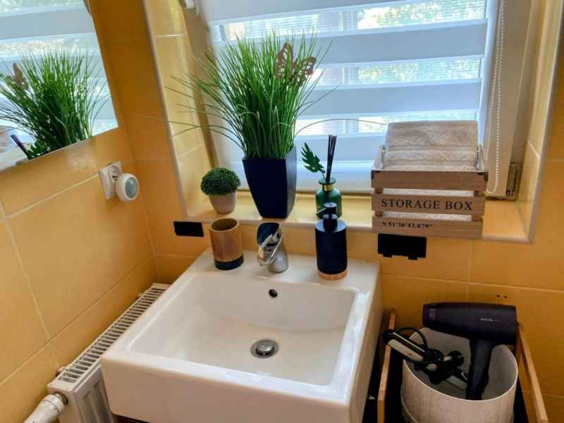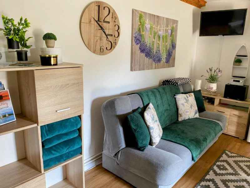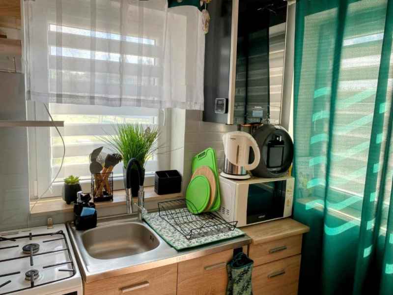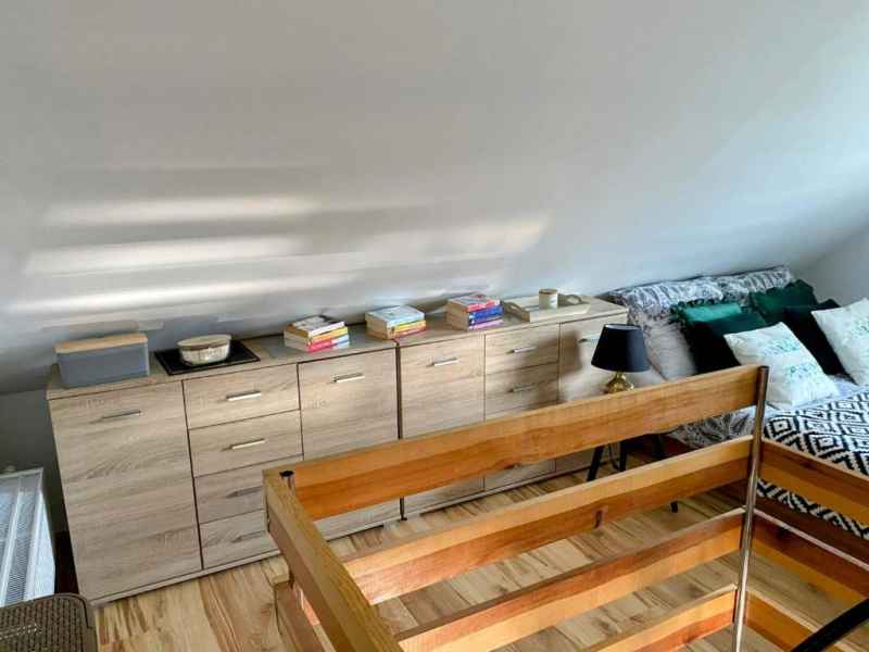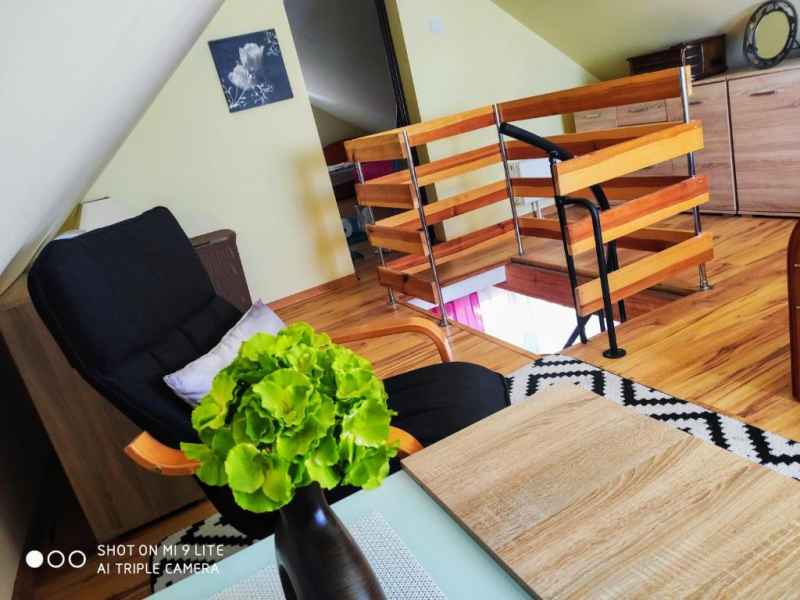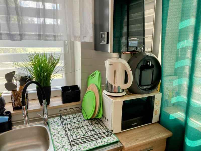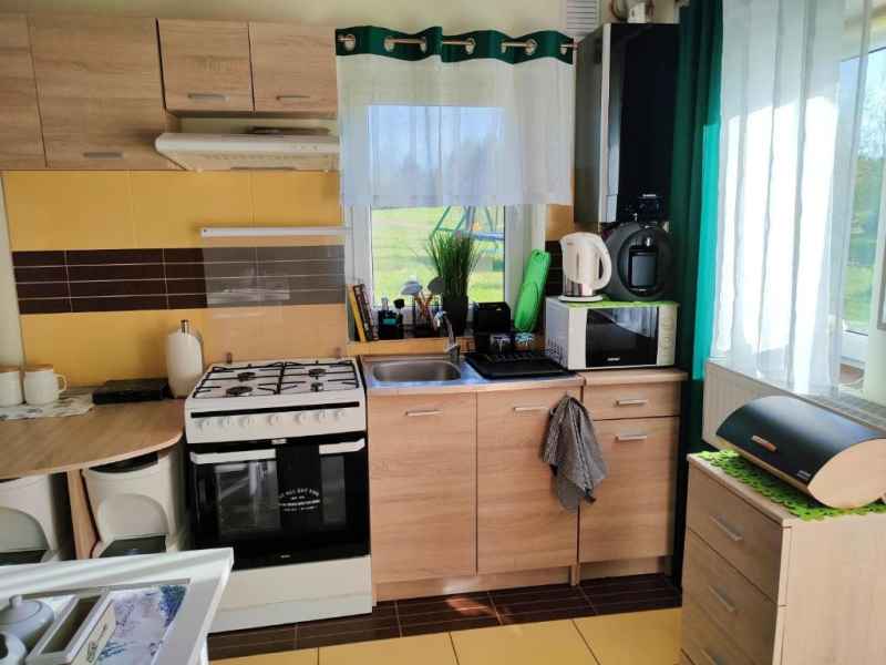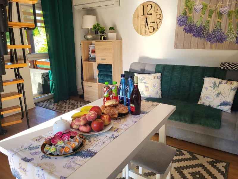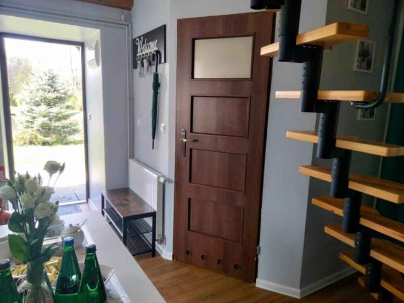 Poza tym kuchnia wyposażona jest w pełna zastawę stołową, garnki, patelnię oraz sztućce jak również przybory kuchenne przydatne podczas przygotowywania potraw.