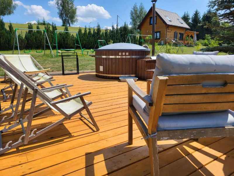 Proponujemy Państwu całoroczny 7 osobowy domek z ogrzewaniem gazowym.