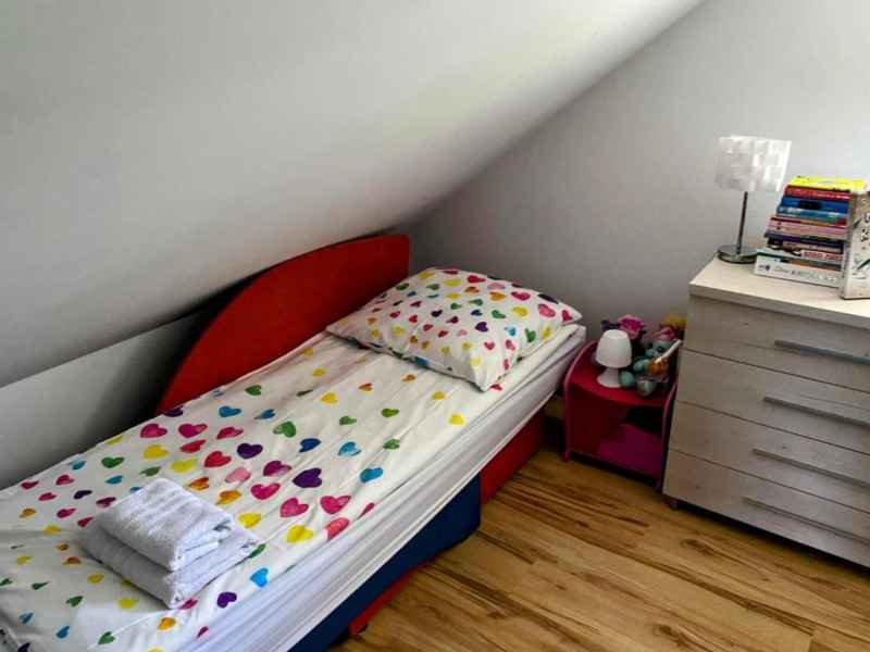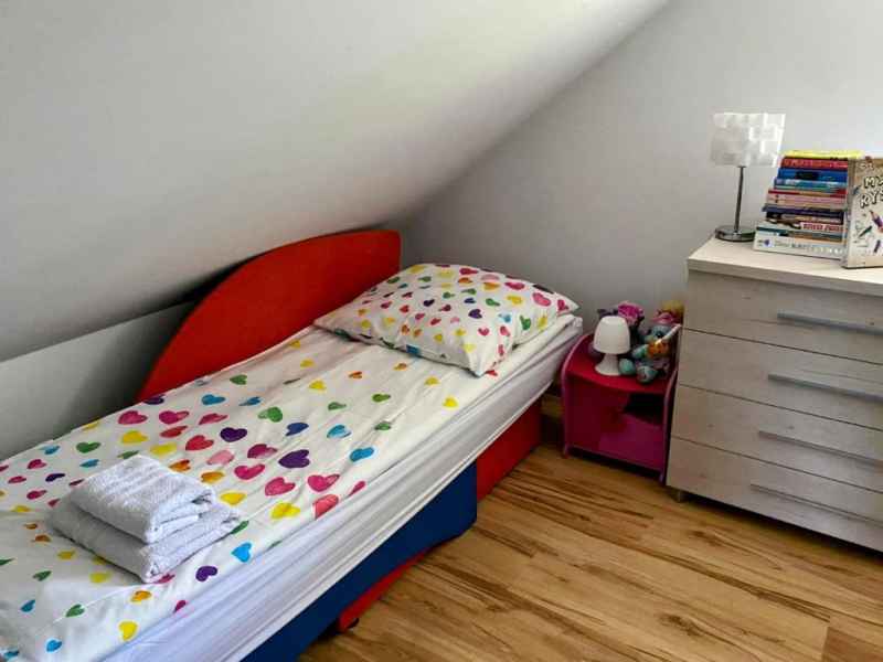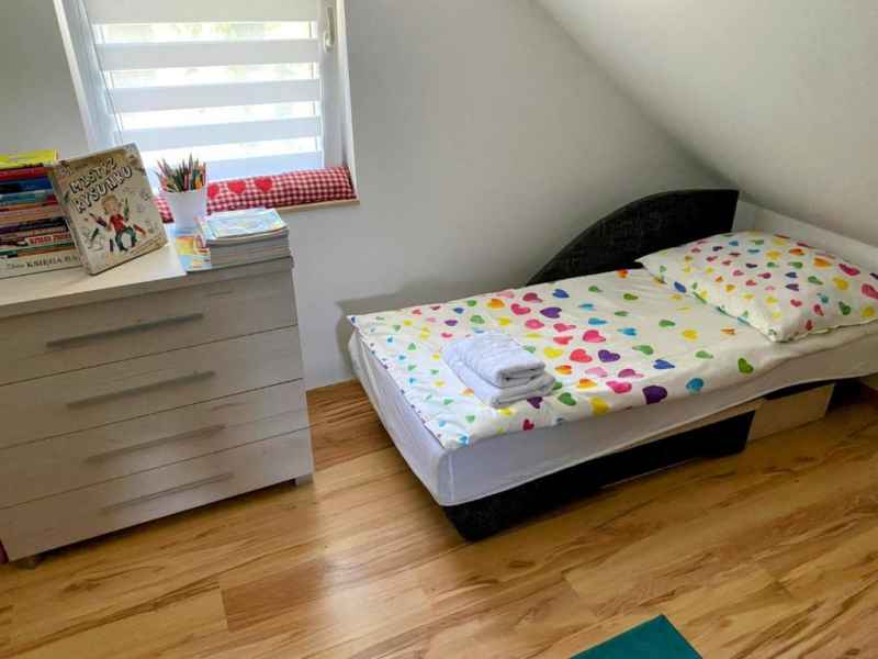 Natomiast druga sypialnia urządzona z myślą o najmłodszych: 3 łóżka 1 osobowe, komody, tv płaski+ DVD.